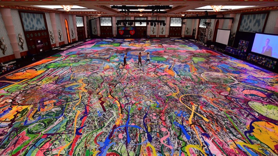 El artista británico, Sacha Jafri, realiza desde hace siete meses una pintura sobre lienzo tan grande como dos estadios de fútbol en un hotel de Dubái, inspirándose en "la humanidad", para intentar entrar en el récord Guinness.