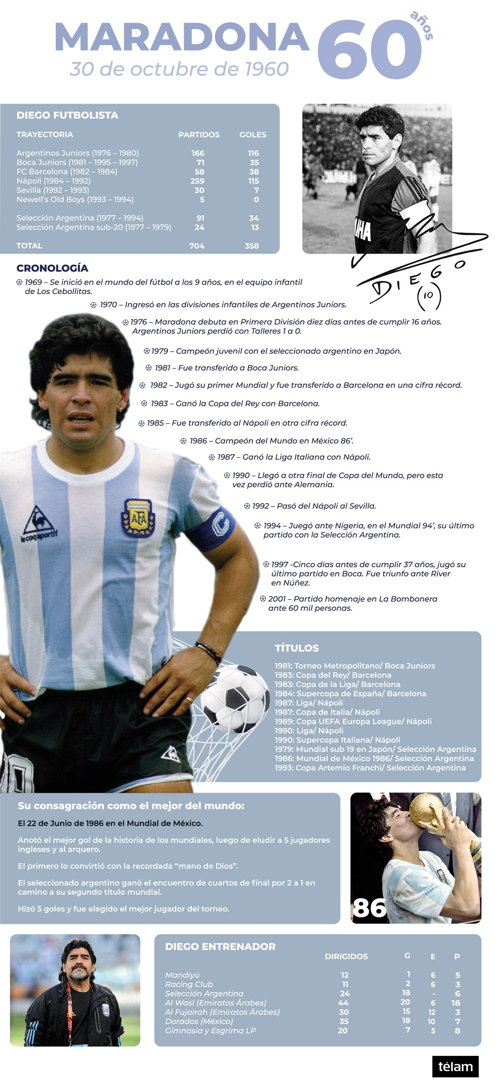 Setecientos días en Catalunya, luces y sombras en el Camp Nou, más sombras que luces en el Mundial de España, víctima de la hepatitis y de la criminal patada de un tal Goicoetxea, viaje al sur profundo de Nápoles, hacedor, gladiador, refundador, San Gennaro y San Diego: ho visto Maradona.