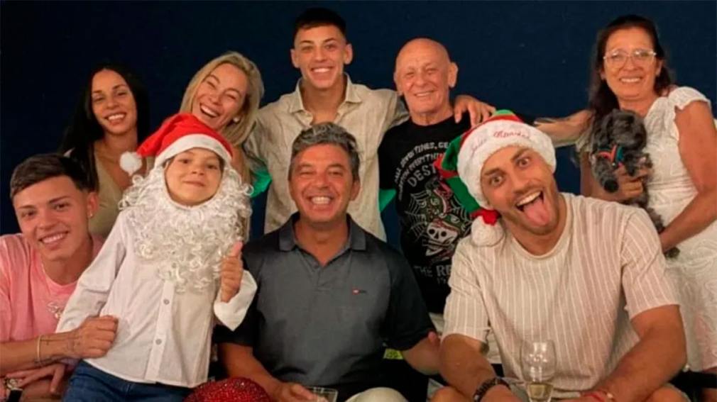 La Nochebuena del Muñeco tuvo un marcado tono íntimo. Con una vestimenta informal y lejos de la exposición habitual, compartió la celebración junto a su esposa Geraldine La Rosa y sus cuatro hijos: Nahuel, Matías, Santino y Benjamín. La postal no fue una más para Gallardo, ya que tres de ellos son futbolistas profesionales que desarrollan sus carreras en distintos países, por lo que no es habitual que puedan coincidir todos en una misma reunión familiar.