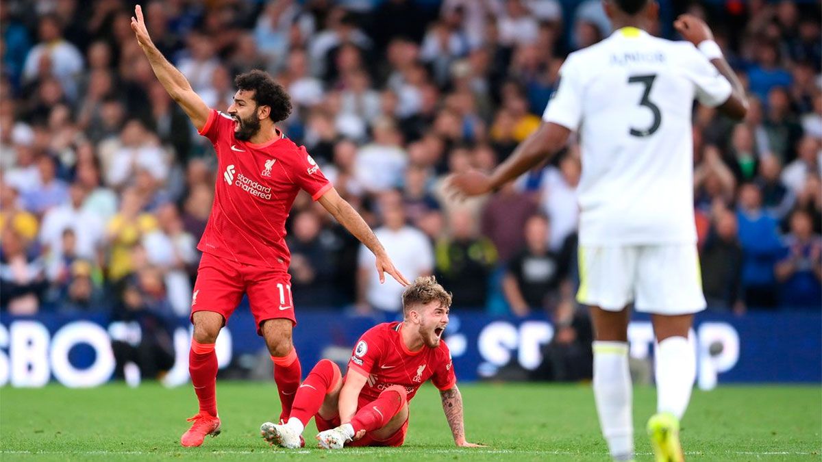Liverpool goleó 3-0 a Leeds United y alcanzó a Manchester United y Chelsea en la primera posición de la Premier League con 10 puntos.