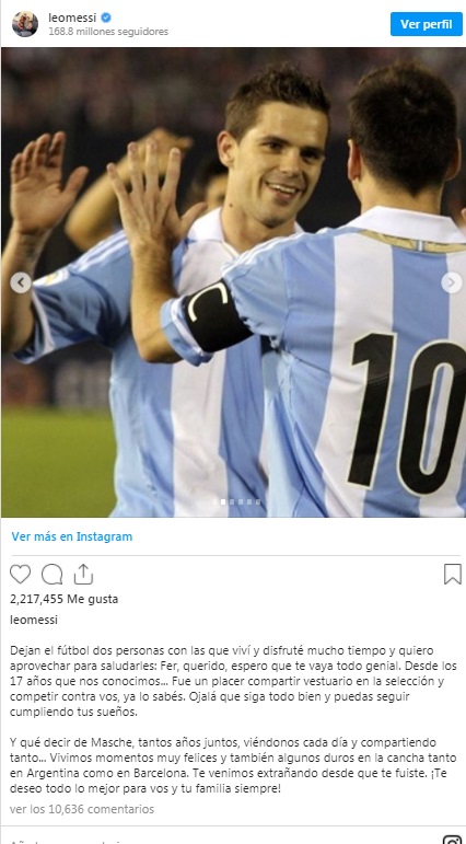 Instagram Messi Emotivo Mensaje Retiros Gago Mascherano