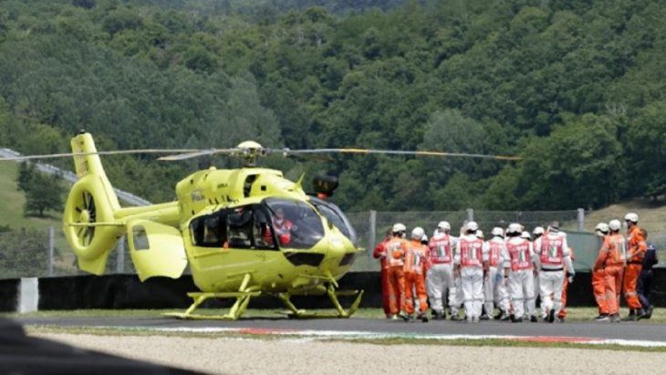 Los servicios médicos de la Federación Internacional de Motociclismo (FIM) lo atendieron de inmediato y lo trasladaron en helicóptero al Hospital Careggi de Florencia.