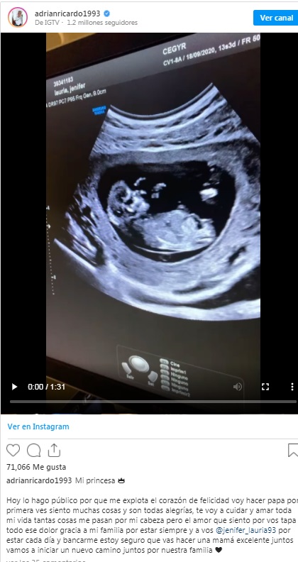 Además, en sus palabras, Centurión dio a entender que su actual novia, Jenifer Lauría, está embarazada de una nena, ya que escribió "Mi princesa".