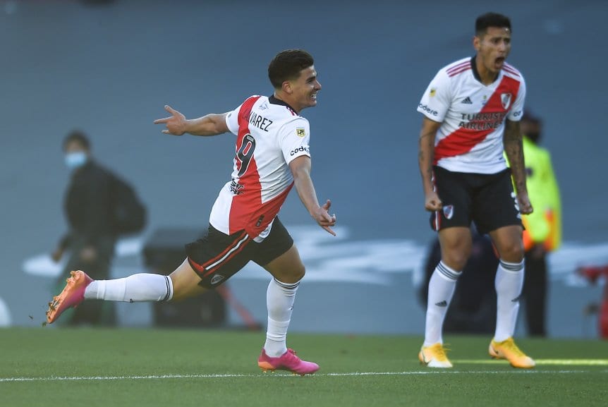 En un encuentro con pocas llegadas, Julián Álvarez -la gran figura del Millonario en el semestre- abrió el marcador a los 24 minutos. El juvenil se sacó de encima a Jorman Campuzano, se perfiló y sorprendió a Agustín Rossi con un bombazo desde afuera del área.