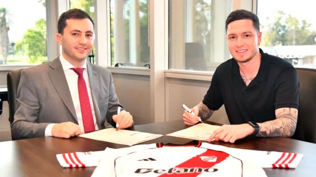 Junto al Presidente @stefanocdicarlo, Aníbal Moreno firmó su contrato y se transformó en nuevo jugador de River hasta diciembre de 2029. #River2026 ??? pic.twitter.com/FlMOO4eSjz
