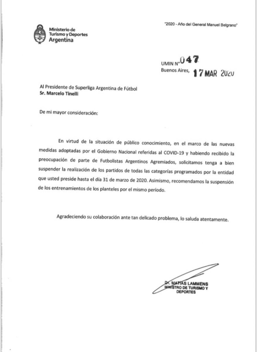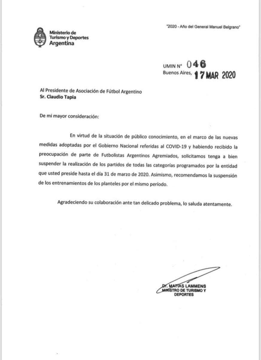 oficial Suspende Fútbol Argentino Coronavirus Nacional