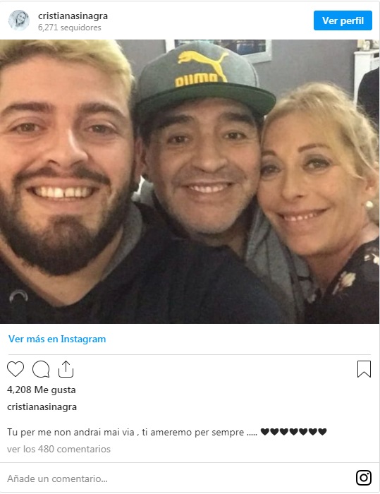 Tras ese abrazo entre padre e hijo que quedará grabado en la memoria de su familia y de todos sus seguidores, la relación entre Sinagra y Maradona continuó en buenos términos y sin rencores por parte de la italiana que el miércoles lo despidió en Instagram: