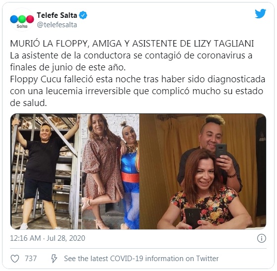 Floppy Cucu, mejor amiga y mano derecha de Lizy Tagliani, falleció intempestivamente. Las redes sociales fueron el canal por el cual se conoció la noticia, aunque no han trascendido oficialmente las causas de su deceso.
