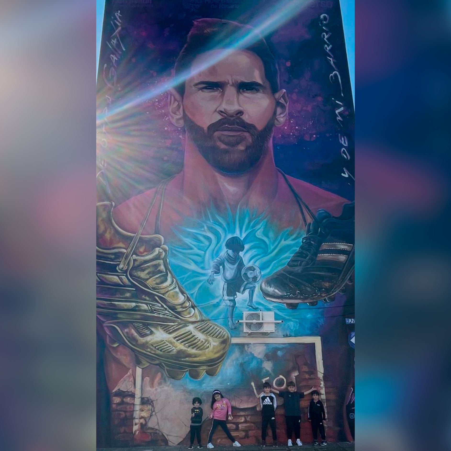 "El mural es un 'Leo' descamisado, que no tiene ninguna casaca de ningún color porque Messi es de todos, es de la gente, con dos botines colgados al cuello: uno clásico, roto y embarrado, como el que usa cualquier jugador, y el de oro”, había explicado Fernando Lerena, uno de los autores de la obra.