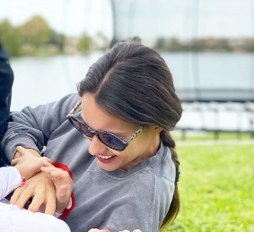 En las divertidas imágenes que publicó se la puede ver a ella jugando con sus hijos y haciendo todo tipo de piruetas; a Bauti saltando en una espectacular cama elástica; a Beltrán disfrazado de superhéroe y a Benicio, el más chiquito, sosteniendo a su mamá con los pies.