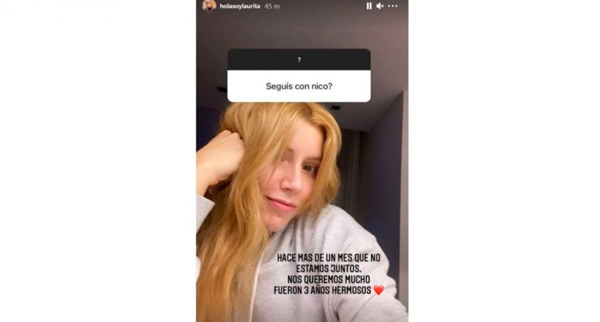 La noche, la lluvia, tal vez todos esos factos convergieron para que Laurita jugara con sus más de cuatro millones y medio de seguidores en Instagram a responder las preguntas que le planteaban. Ante la consulta de una persona sobre si seguía con Nicolás, la conductora de El Trece respondió sin vueltas: "Hace un mes que no estamos juntos".