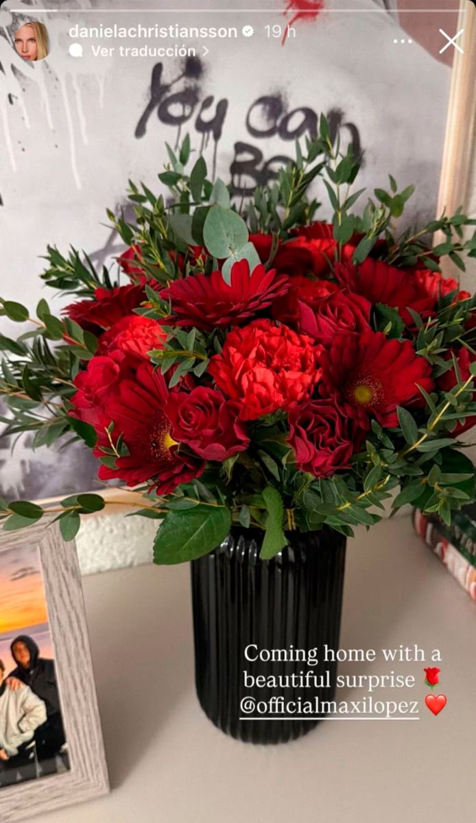 “Volviendo a casa con una hermosa sorpresa”, escribió ella en la historia donde mostró el gesto que tuvo Maxi.