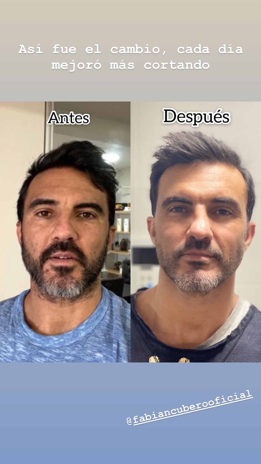Finalmente, filmó orgullosa a su novio y expresó: "Este es el cambio, prolijito, todo cortito". A continuación compartió otra story con dos fotos que retratan el antes y el después del corte. ¿Aprobado?