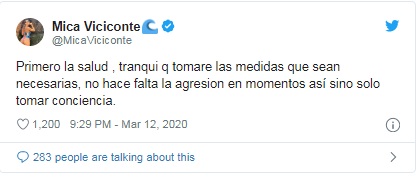 Mica tomó el guante y se defendió con un certero mensaje: "Primero la salud, tranqui que tomaré las medidas que sean necesarias, no hace falta la agresión en momentos así sino solo tomar conciencia".
