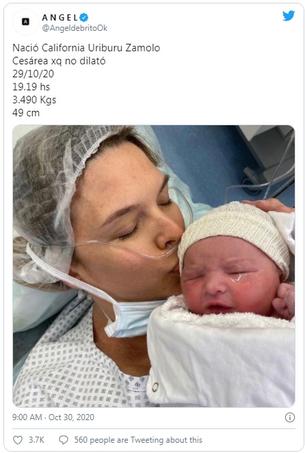 La noticia la dio Ángel de Brito en Twitter, quien además confirmó el extravagante nombre de la pequeña: California.