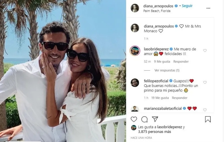 A las pocas horas de conocerse el compromiso de Juan Pico Mónaco con su novia, Diana Arnopoulos, los tortolitos confirmaron que ¡ya se casaron!