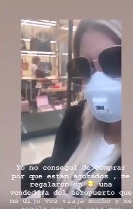 La empresaria se grabó en el aeropuerto Fiumicino de Roma con un barbijo que le prestó una empleada del lugar. Su destino era Francia, uno de los países afectados por el virus.