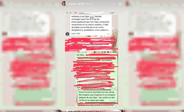 Minutos después de que Mauro Icardi publicara un extenso descargo tildándola de “mitómana”, Wanda Nara redobló la apuesta, expuso los chats privados entre ambos y, si bien no dejó ver el contenido de los mensajes, la censura estaba puesta cuidadosamente para que algunas palabras se filtraran.