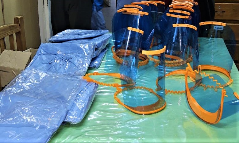 “Leandro Cerezo, un comerciante dueño de una imprenta colaboró con filamentos PLA, y además el acetato que lleva el visor se está haciendo con radiografías donadas y, también nos han aportado botellas de gaseosas para sumar a la elaboración de las máscaras”.