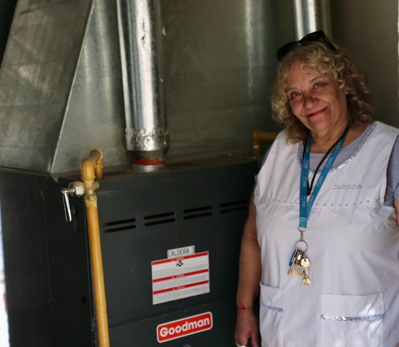 La directora General de Inspección y Certificación de Mantenimiento Escolar Zona Norte, Paola Bauer, recorrió la institución educativa con el fin de supervisar los avances e inspeccionar la instalación de cinco nuevos equipos de climatización -entre unidades Midea, Surrey y la Ciroc CC75- además de constatar las reparaciones realizadas.