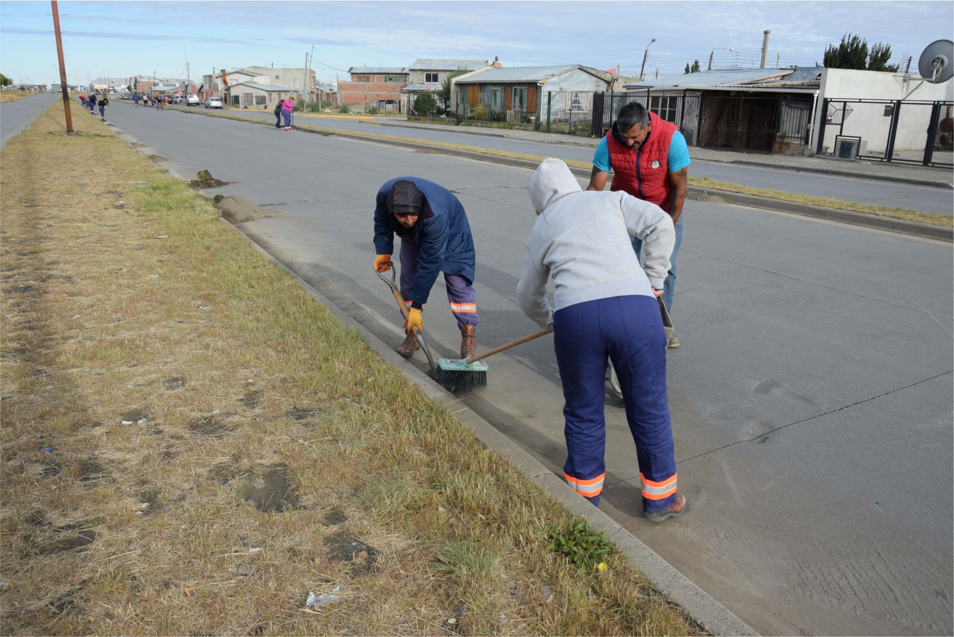 De igual modo, se realizó un importante despliegue del área de Limpieza Urbana dependiente de la Dirección de Saneamiento Ambiental sobre Avenida Balbín. Los agentes municipales procedieron al barrido de cordones y carpeta asfáltica en el Boulevard que divide ambas manos y la calle lateral.