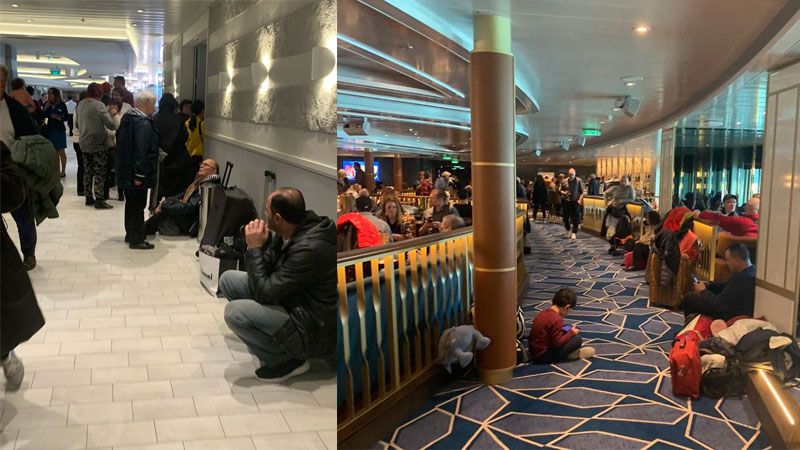 Dentro de la nave se vive una situación de “total normalidad” y los turistas esperan y charlan entre ellos en el recibidor y en los pasillos, explicó más temprano por teléfono uno de los viajeros que se encuentran a bordo, Filippo Rossi, acompañado por su familia.