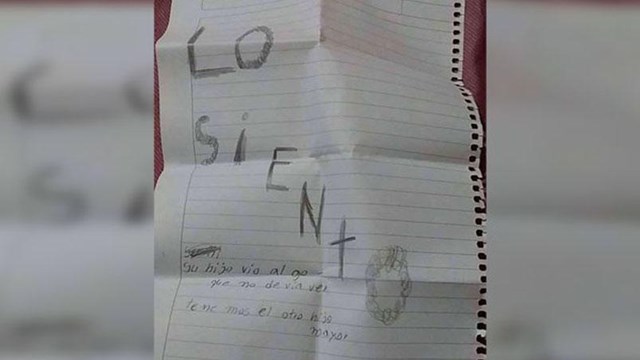 En el bañó de la casa halló un escalofriante mensaje que la dejó paralizada. “Lo siento, su hijo vio algo que no debía ver. Tenemos al otro hijo mayor”, decía la carta con los detalles del asesinato.