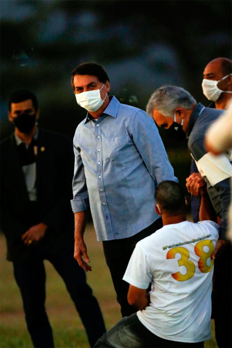 A poco más de dos metros de distancia, Bolsonaro recorrió el parque donde estaban sus partidarios, muchos de ellos sin barbijo y sin respetar el distanciamiento social recomendado para prevenir el contagio de coronavirus, describió la agencia de noticias EFE.