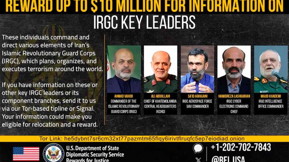 En medio de su ofensiva contra Irán, las autoridades de Estados Unidos ofrecieron una recompensa de 10 millones de dólares por información sobre los principales líderes militares del régimen persa