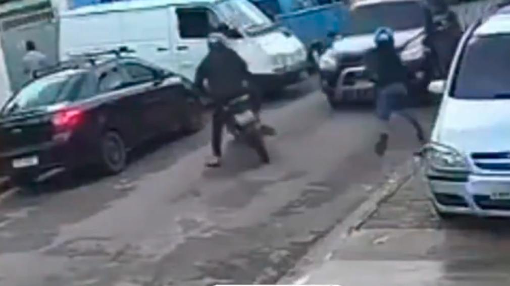 El hecho ocurrió cuando dos hombres en motocicleta se aproximaron al vehículo y uno de ellos apuntó con un arma al conductor, que circulaba en sentido contrario a los atacantes. Según se puede ver en el video, lejos de detenerse, el automovilista continuó su marcha y embistió al asaltante, según informó O Globo.