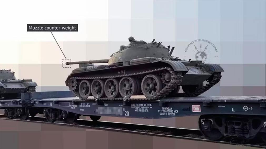 Rusia ha sacado del almacenamiento tanques de la década de 1940, según nuevas imágenes de un grupo de monitoreo, el Equipo de Inteligencia de Conflictos, que compartió imágenes de los tanques antiguos en un tren.