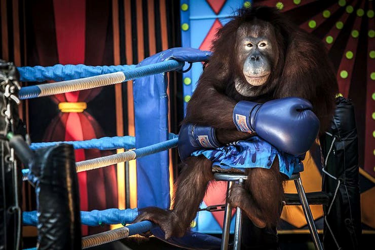 Cuatro imágenes más se alzaron como finalistas en esta misma categoría. Entre ellas, la de un orangután al que explotan en espectáculos del fotógrafo Aaron Gekoski', o la de un jaguar que acaba de capturar a una anaconda de Michel Zoghzhogi's.