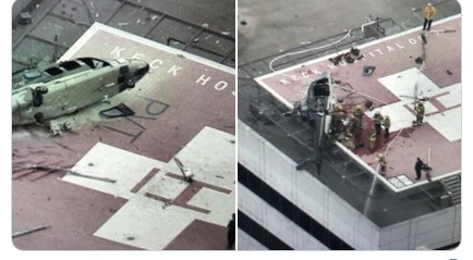 Un helicóptero de servicios privados de ambulancia se estrelló en la azotea del Hospital Keck, en California (EE.UU.), a donde llevaba un corazón donado con miras a un trasplante. El hecho se produjo en la tarde de este viernes, cuando el aparato se disponía a aterrizar en el helipuerto del centro médico.