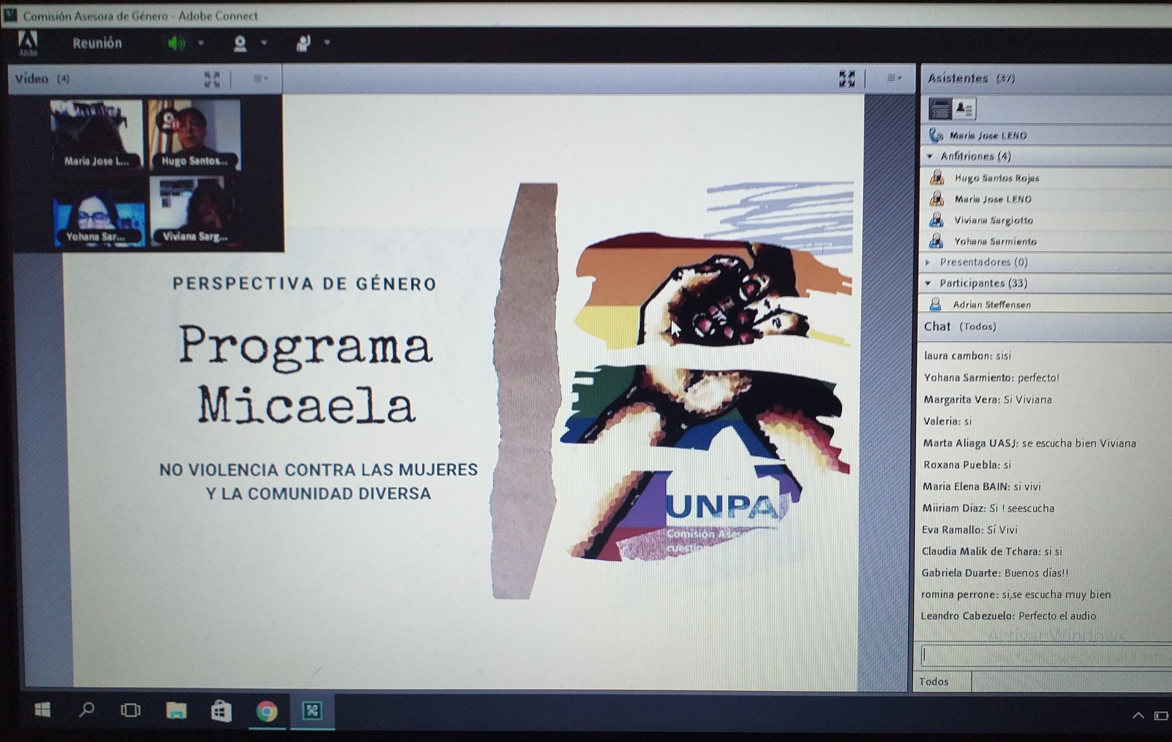 La videoconferencia contó con la participación activa del Rector de la UNPA, Ing., Hugo Rojas, quien dio marco institucional a la actividad y destacó que “la universidad cumple con esta decisión del Congreso de la Nación, que es la capacitación obligatoria en perspectiva de género y no violencia hacia las mujeres”.