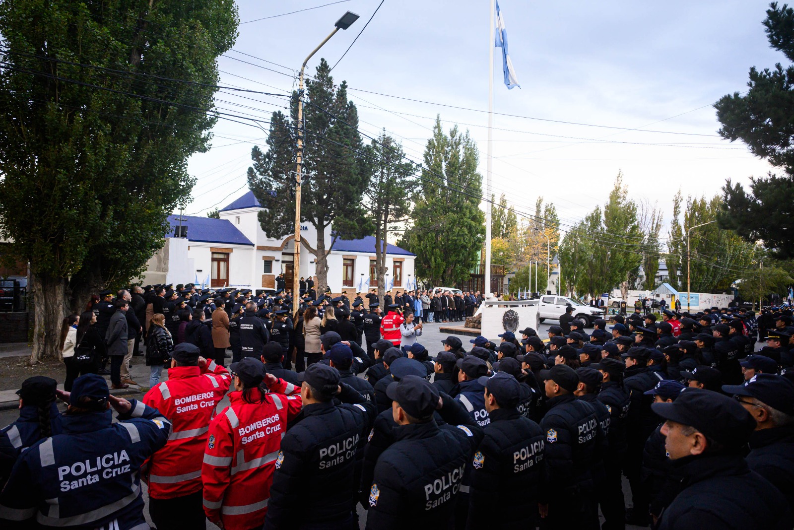 El acto formó parte de una agenda que se replicó en distintas localidades de Santa Cruz, con la presencia de funcionarios provinciales en cada uno de los homenajes.