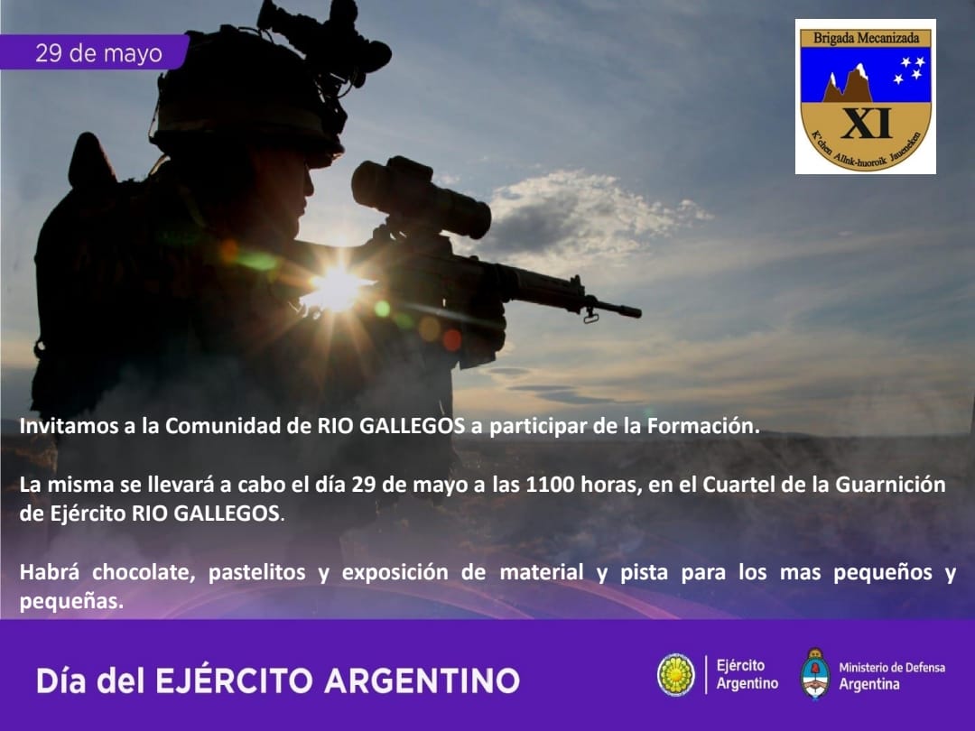 Mañana 29 de Mayo el ejército Argentino conmemora los 213 años de su creación por tal motivo la XI Brigada Mecanizada con asiento en la capital santacruceña realizará una muestra abierta a la comunidad.