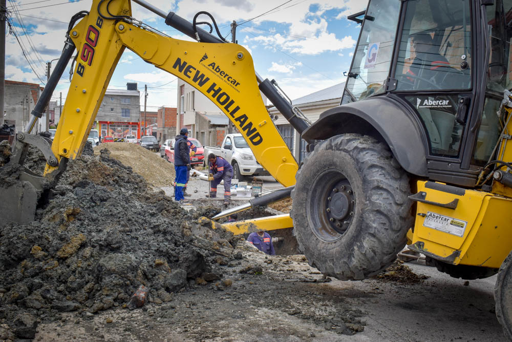 Con un importante despliegue de personal y maquinas, trabajadores de la Dirección de Mantenimiento de Redes Pluviocloacales realizaron la reparación de un caño maestro de 160 milímetros en el pasaje E. Bitsch entre Kirchner y Zapiola. Para tales labores se contó con el aporte de un camión volcador, pala cargadora y un camión atmosférico perteneciente al área de Obras Viales.