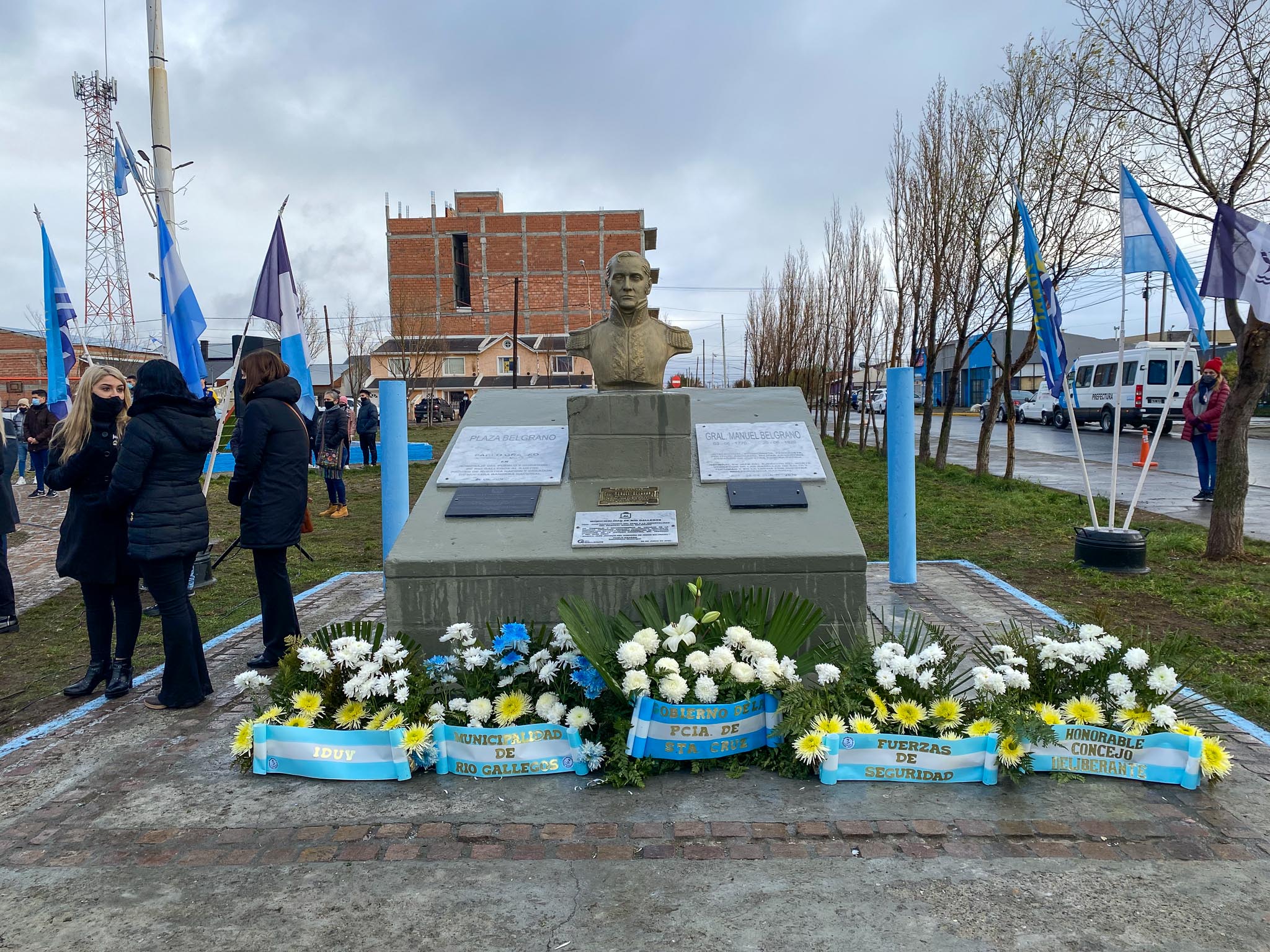 En la oportunidad, se hizo una reseña sobre Manuel Belgrano y se entonaron las estrofas del Himno Nacional, que también fue interpretado en lengua de señas por el Grupo “Manos que Hablan”. Luego se procedió a la colocación de ofrendas por parte de las autoridades presentes al pie del busto de Manuel Belgrano, que fue íntegramente restaurado por personal municipal. También hubo invocación religiosa y minuto de silencio.