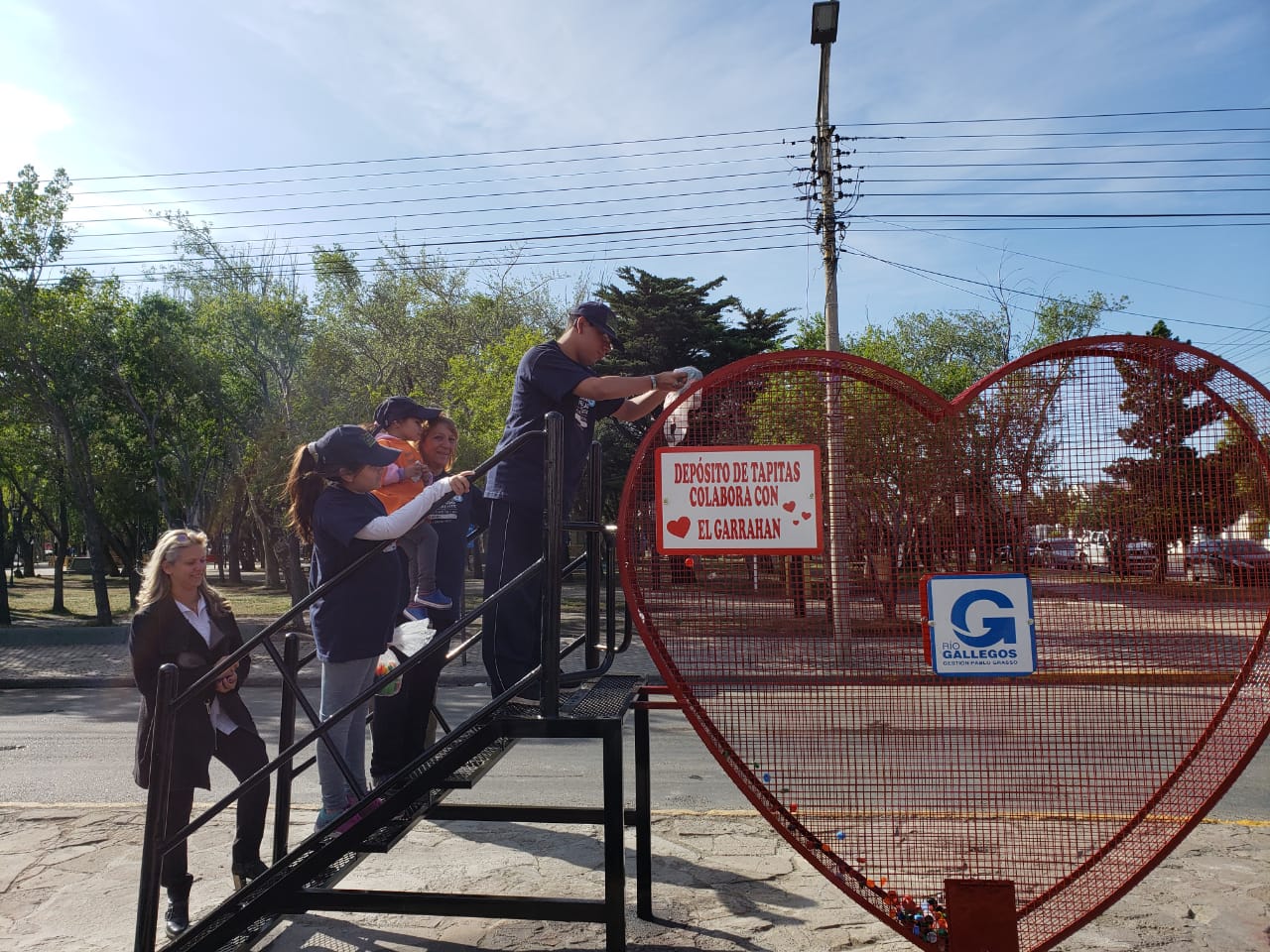 Los vecinos de Río Gallegos pueden apreciar desde hoy la figura de un gran corazón rojo al que se accede por una escalera, ubicada frente al Palacio Municipal. Se trata de una solidaria iniciativa de la Comuna, que tiene por objetivo canalizar el aporte de todos los vecinos a la Fundación Garrahan juntando tapitas plásticas.
