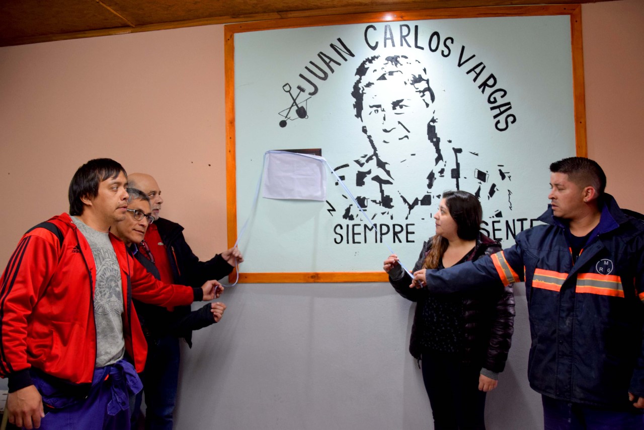 En un emotivo acto, que se realizó en la sala que llevará en adelante el nombre de Juan Carlos Vargas, se llevó adelante con la presencia del Jefe Comunal y todos los compañeros del recordado trabajador, área de limpieza de la Municipalidad. También estuvo presente su pareja y sus hijos, quienes participaron del descubrimiento de la placa.