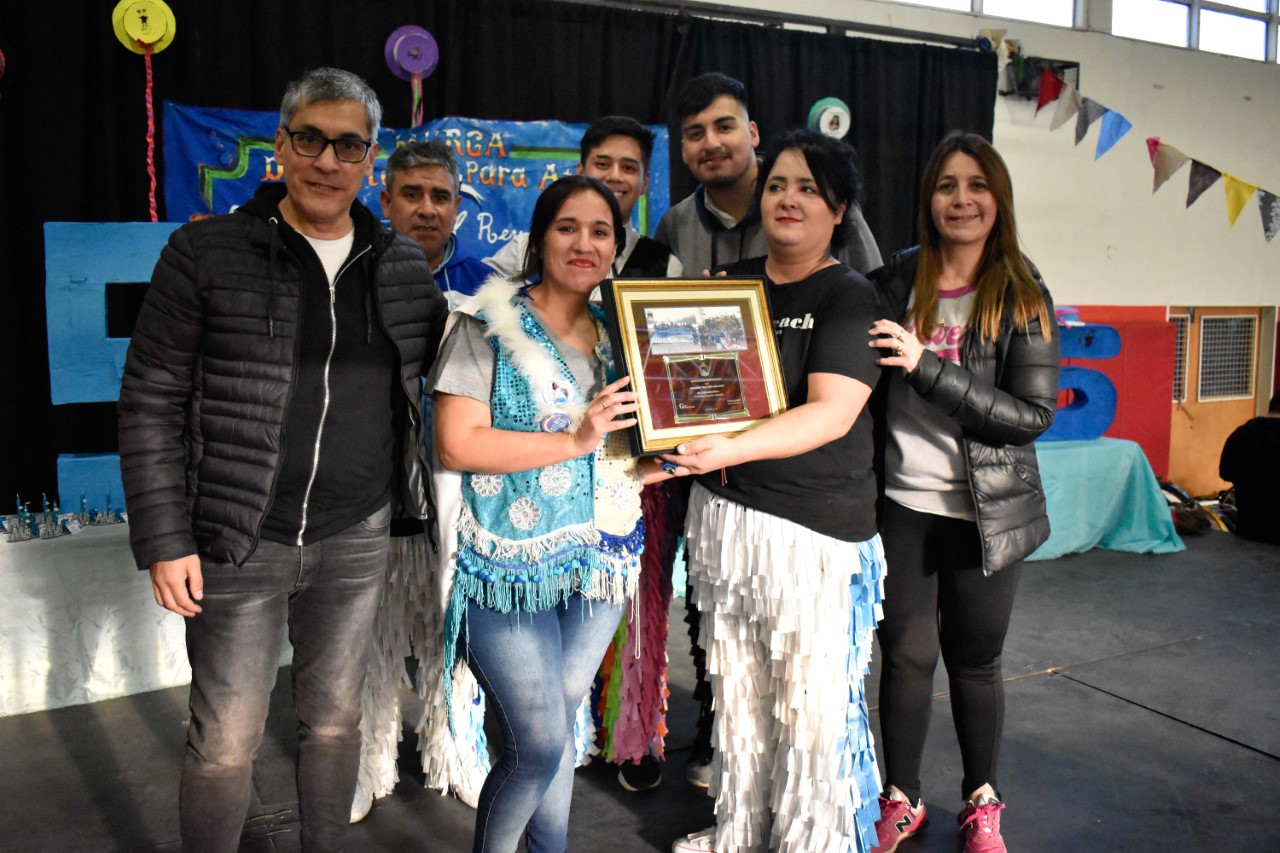 Con una gran fiesta que se realizó hoy en el Gimnasio Municipal Juan Bautista Rocha, la Fundación Murga “De la Ruta para atrás” conmemoró su 15° aniversario. Participó el Intendente Pablo Grasso, que entregó el decreto de adjudicación de un terreno que era esperado desde hace muchos años por los integrantes de la Murga. También estuvieron presentes la Secretaria de Coordinación Ejecutiva Claudia Picuntureo, el Diputado Eloy Echazú, la Presidenta del IDUV María Grasso, y la Directora de Tierras y Catastro de la Municipalidad de Río Gallegos, entre otros.