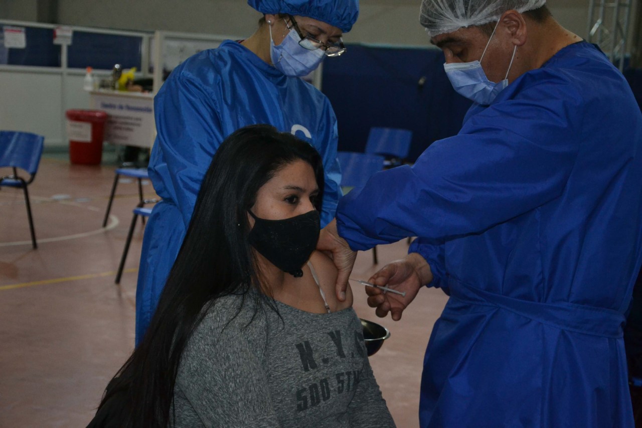 Adriana tiene 31 años y este feriado llegó al Centro de Vacunación Municipal que funciona en el Gimnasio “17 de Octubre” para recibir la primera dosis de Sinopharm.