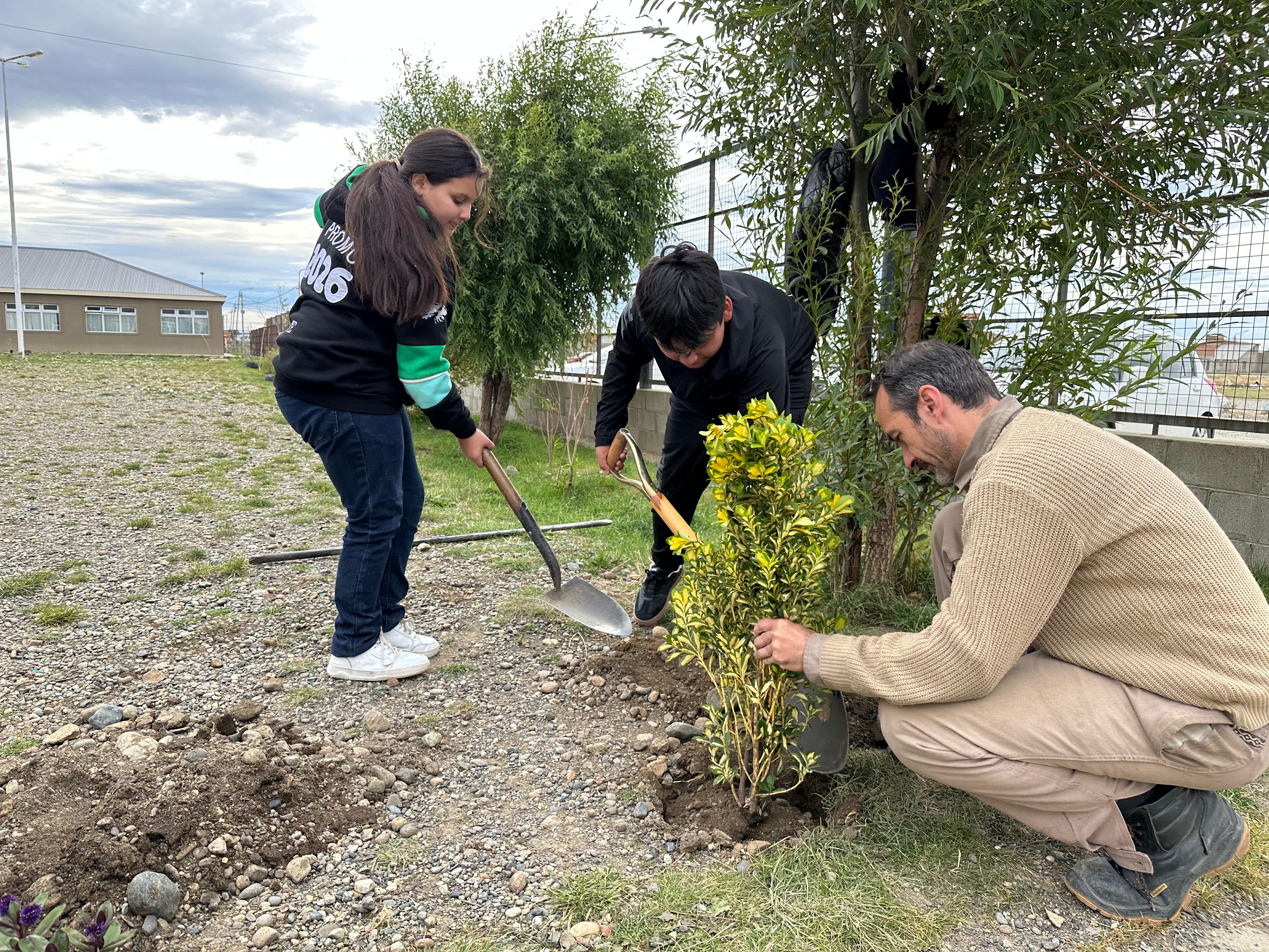 Uno de los momentos más destacados de la jornada fue la participación activa de alumnos de 7° grado, quienes trabajaron codo a codo con el equipo técnico del organismo en la plantación.