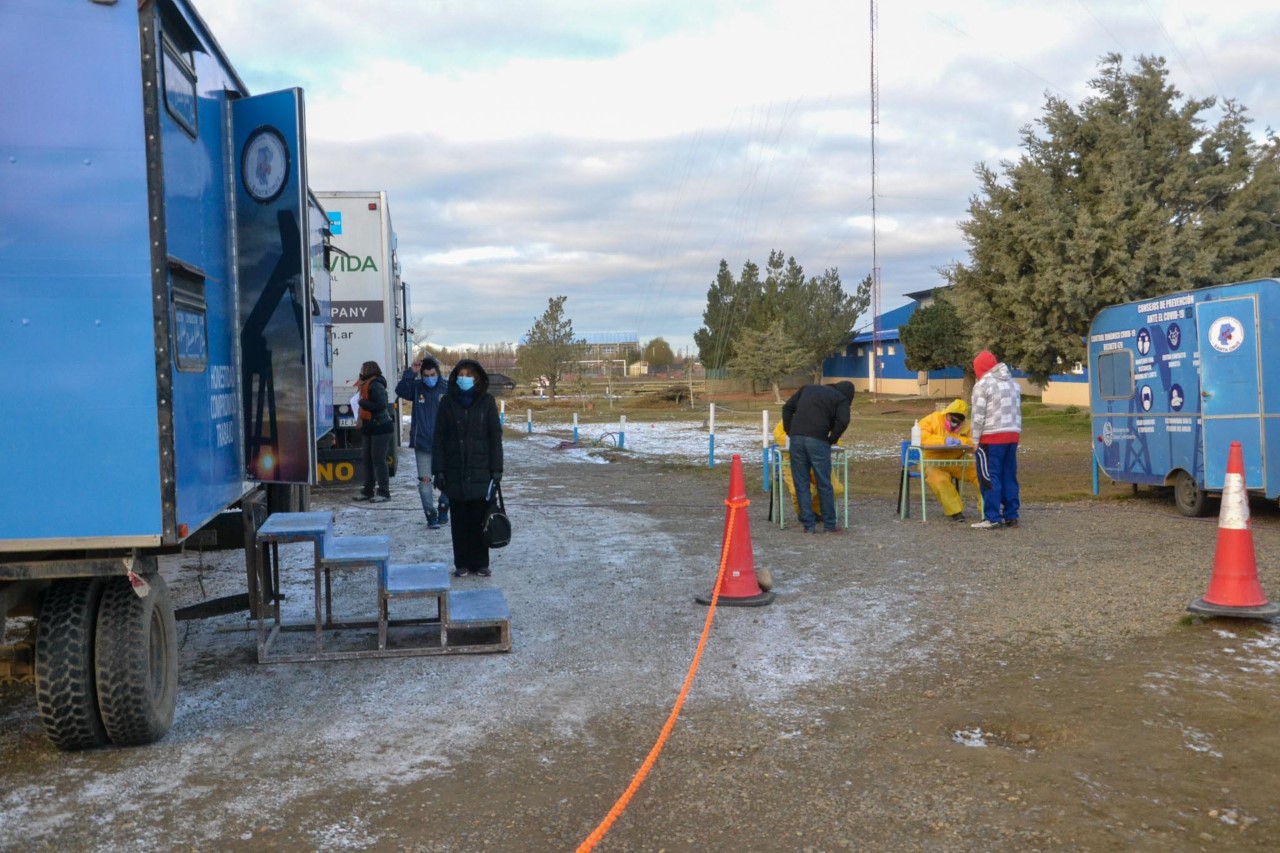 El responsable del área médica del sindicato petrolero, Dr. Ariel Varela, señaló que en este primer día de testeos “los vecinos de Rio Gallegos han venido y fue una excelente jornada de trabajo” a pesar de “que hoy tuvimos un frío muy fuerte”. Respecto de la cantidad de personas que fueron hisopadas, Varela detalló que de acuerdo a sus datos preliminares “calculamos que se hicieron unos doscientos tests en cinco horas, realmente es una gran cantidad y seguramente iremos aumentando por día”.