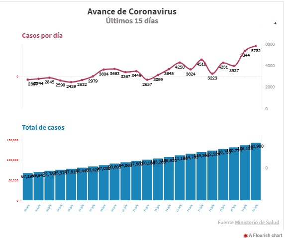El Ministerio de Salud de la Nación confirmó 5.782 nuevos casos de COVID-19. Con estos registros, suman 141.900 positivos en el país.