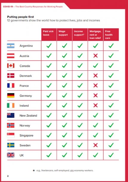 "El apoyo directo del gobierno a la economía real es la única manera en que los trabajadores podrán permanecer en sus hogares y alimentar a sus familias mientras la economía está cerrada. Estos 12 países establecen una norma sobre lo que los gobiernos pueden proporcionar a los trabajadores que debe ser imitada por muchos más gobiernos de todo el mundo. Todavía hay lagunas significativas en algunos de los países, y los sindicatos están presionando para que estas lagunas se llenen", aseguró al presentar el informe Sharan Burrow, Secretaria General de la CSI.