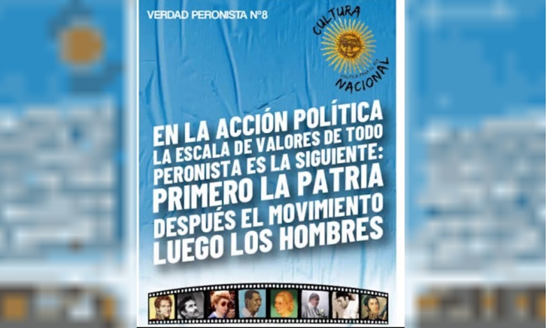 Y la segunda de las imágenes indicaba: "En la acción política, la escala de valores de todo peronista es la siguiente: Primero la patria, después el movimiento, luego los hombres".