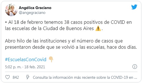 La Unión de Trabajadores de la Educación (UTE) informó que al menos 38 docentes dieron positivo de coronavirus en la las escuelas de la Ciudad de Buenos Aires. Los profesionales regresaron al trabajo el 8 de enero mientras que las clases presenciales comenzaron ayer.