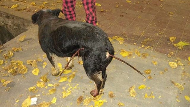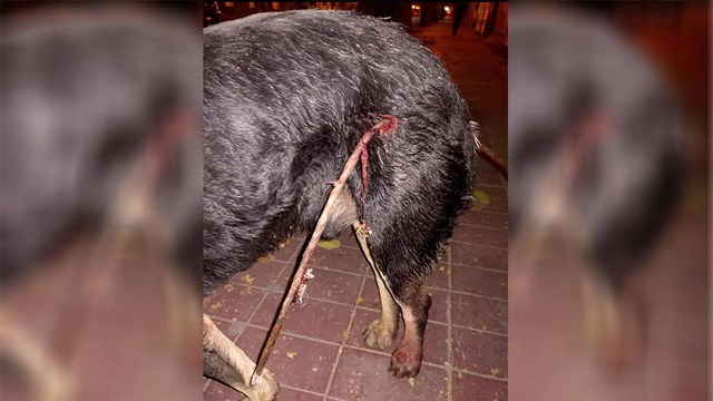 Un doloroso caso de maltrato animal ocurrió el domingo por la tarde en la ciudad de Mendoza luego de que una pareja encontrara a un perro deambulando con un hierro atravesado en sus patas traseras.