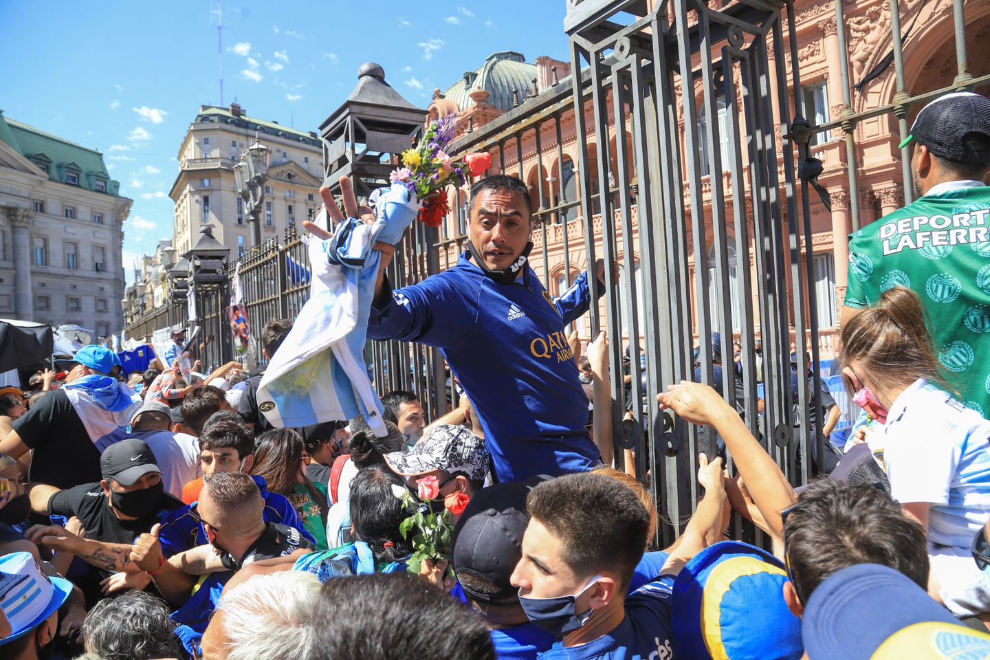Miles de personas pasaron este jueves por la casa de Gobierno para dejarle al Diez una flor, una foto, un rosario, una pelota o una camiseta. Muchas de ellas, incluso, hicieron cola durante toda la noche en la Plaza de Mayo para tener la oportunidad de entrar a despedir al mejor jugador de fútbol de todos los tiempos.
